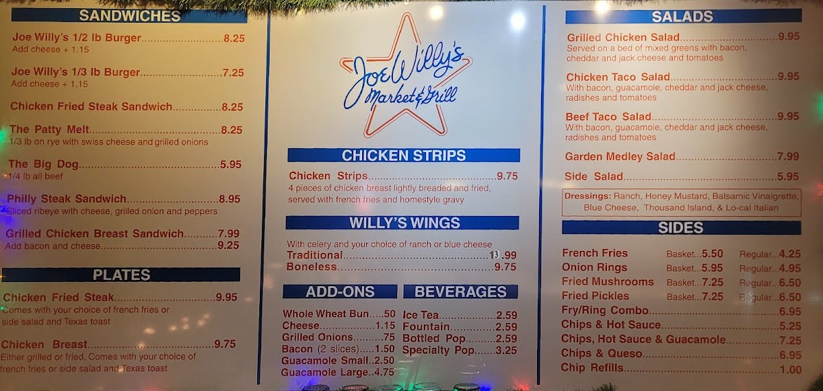 With consistently friendly service and a menu designed to satisfy every craving, Joe Willy's is the perfect spot for families and friends seeking a memorable dining experience.